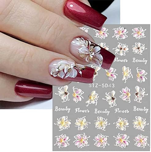 3D Embossed Spring Flower Nail Art Stickers Decals Self-Adhesive 5D Floral Nail Supplies Nail Art Design Decoration Accessories 4 Sheets