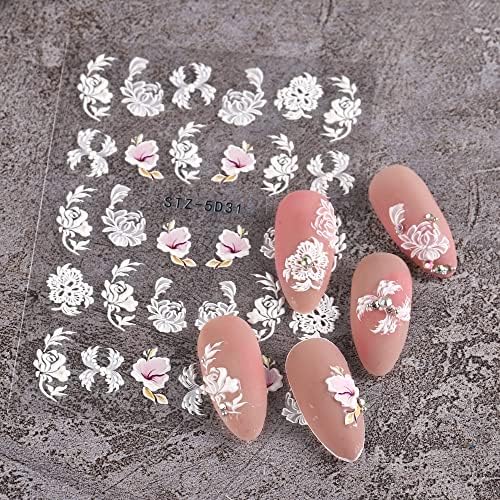 5D Spring Embossed Flower Nail Art Stickers 4 Sheets JMEOWIO Real Self-Adhesive Decals Floral Design Nail Decoration for Women Girls