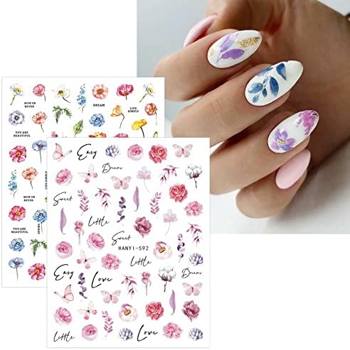 JMEOWIO 9 Sheets Spring Flower Nail Art Stickers Decals Self-Adhesive Colorful Summer Floral Nail Supplies Nail Art Design Decoration Accessories