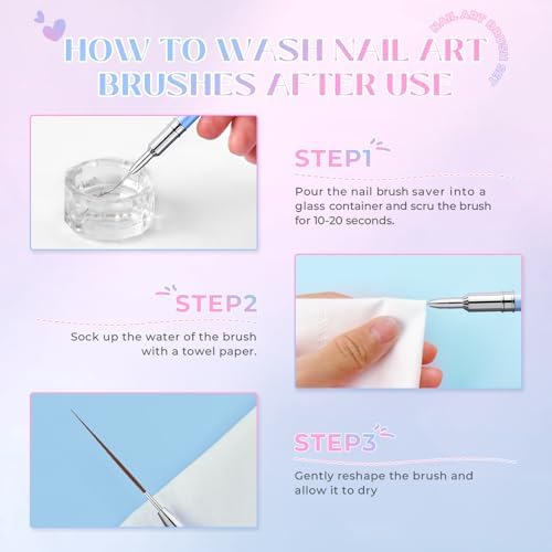 💋 Excellent multi-functional experience: Gel liner nail art brushes are easy to operate and can meet your various nail art and design needs, such as drawing lines, drawing delicate patterns, painting flowers, drawing checkered patterns, small details, filling in colors, marbling, swirling, blending, short strokes, etc. Not only for nail painting, but also for eyeliner and face painting, don’t let your imagination stop you!