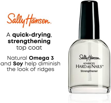 Sally Hansen hard as nails is an extra-strength nail hardening treatment that protects and strengthens soft, fragile nails. Nylon formula fortifies nails and helps prevent chipping, splitting and peeling; retinol and copper peptide formula hydrates parched nails; Omega 3 and soy formula helps diminish the look of ridges. Application tips: Apply 2-3 coats on bare nails, let dry. Available in nude shade. Supplied in 13.3 ml bottle.